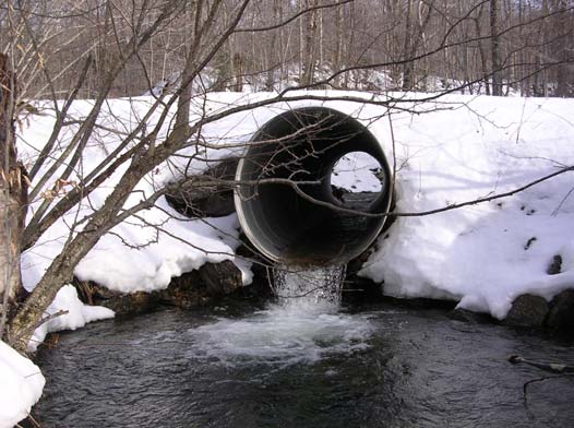Photo of a culvert causing a fish passage barrier in Stevensville Brook, Vermont.
