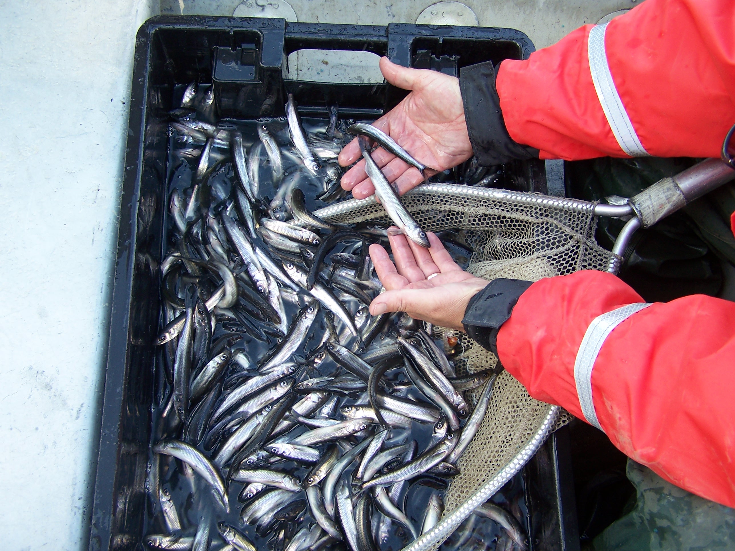 Photo of the illegally introduced rainbow smelt in Big Wadleigh Pond in Maine.