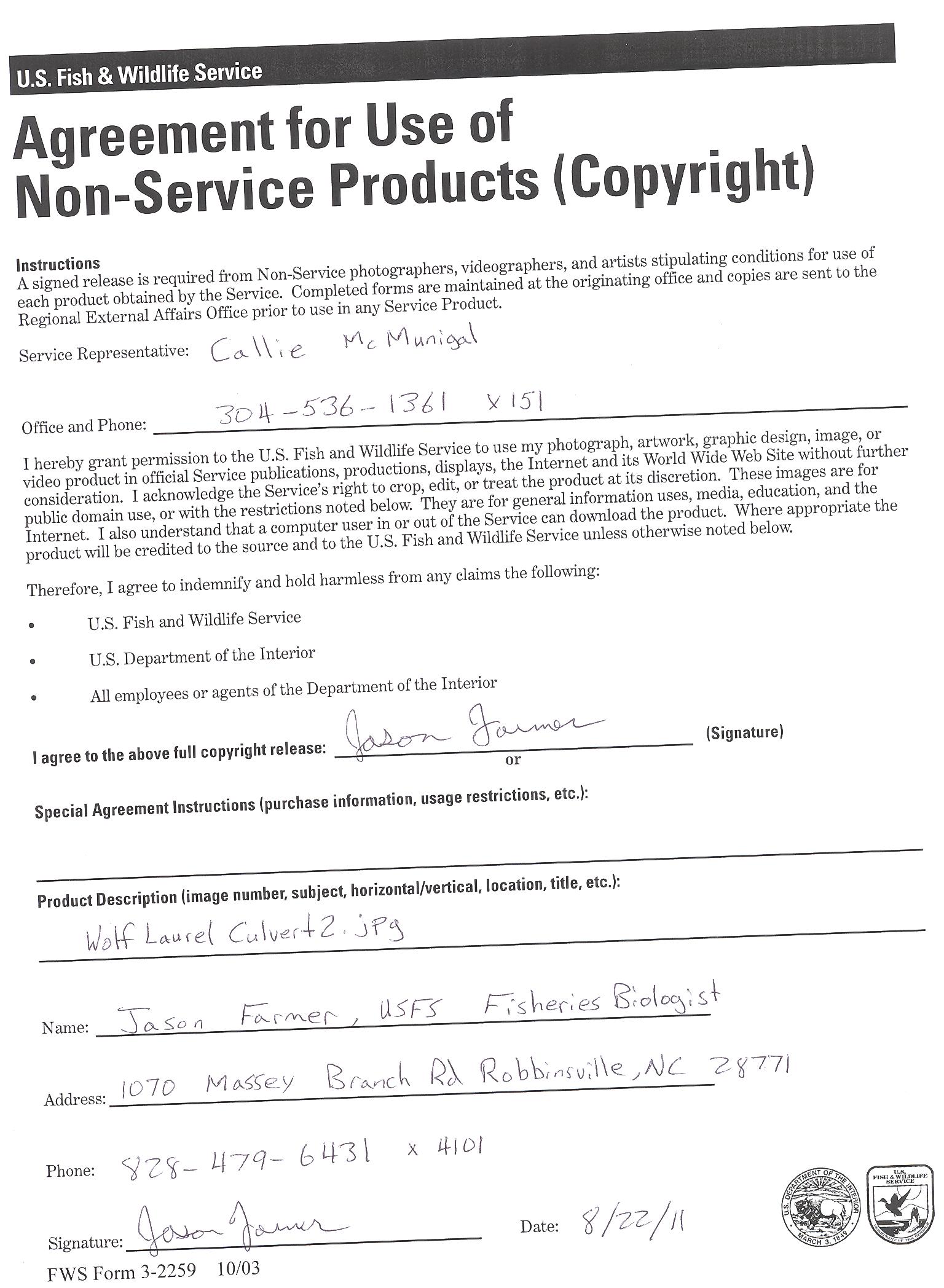 Photo Release Form for the Wolf Laurel Fish Passage Project in North Carolina.