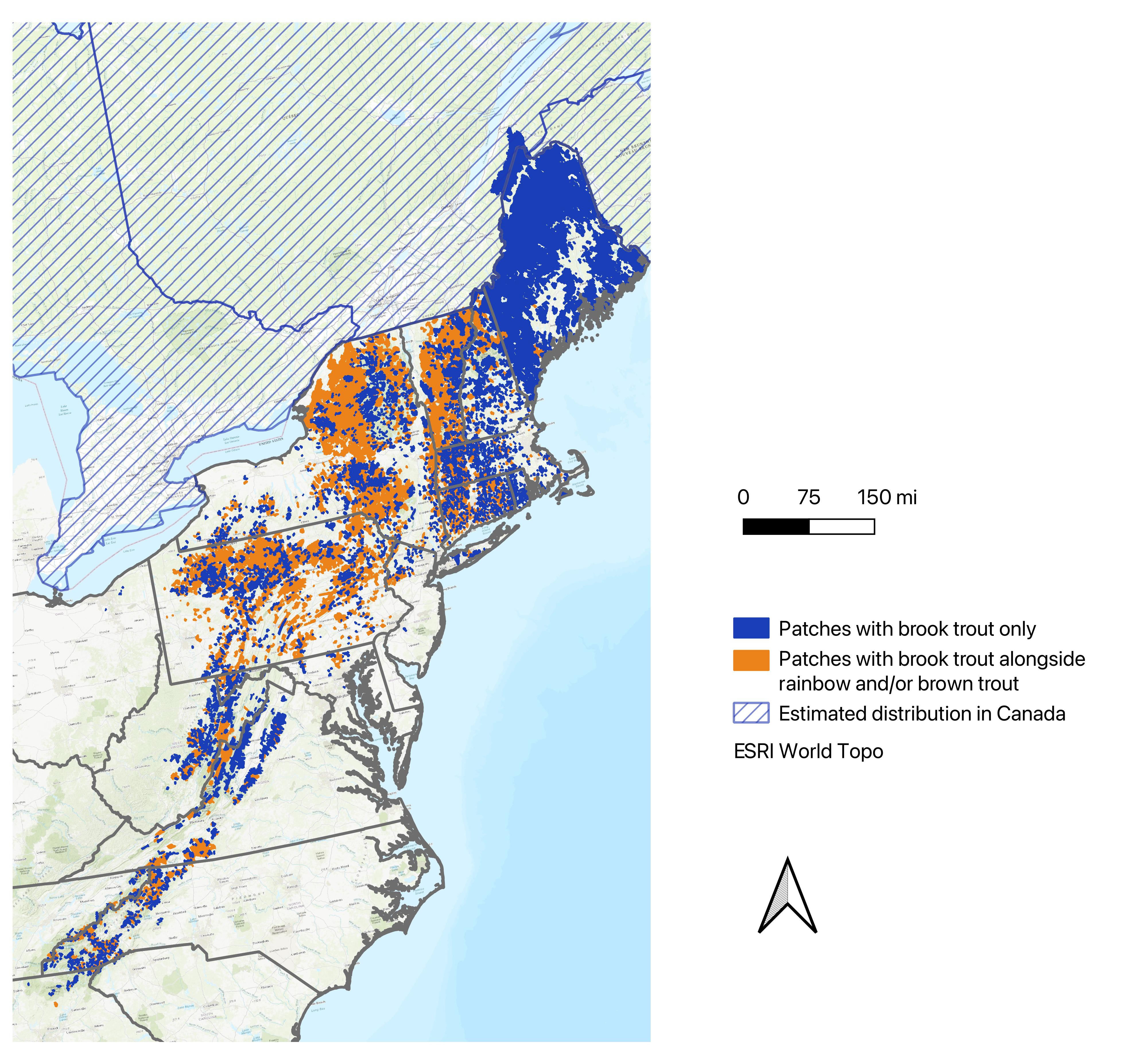 Eastern US map of wild brook trout patches